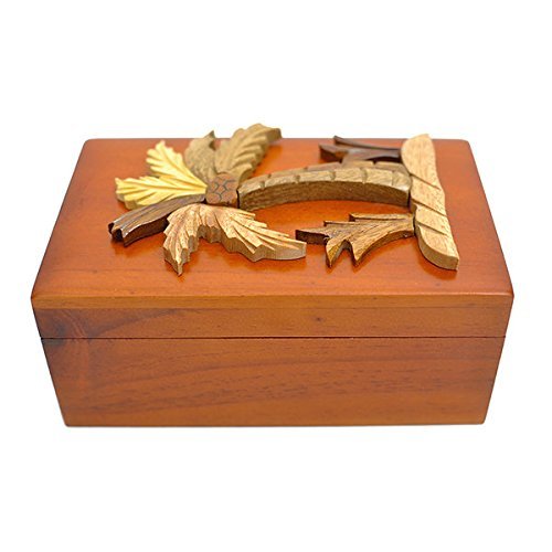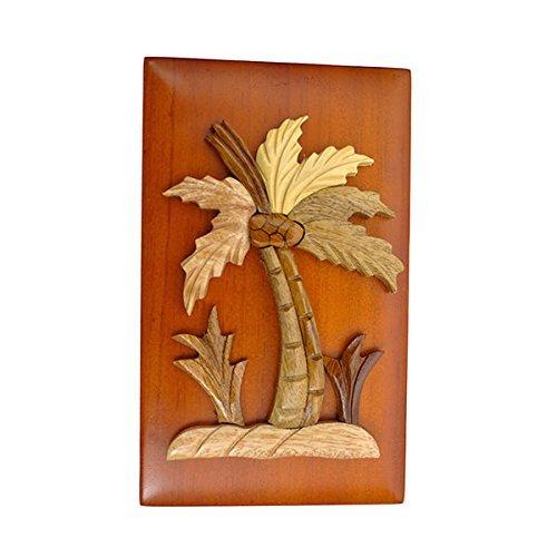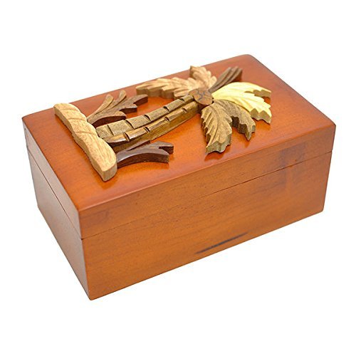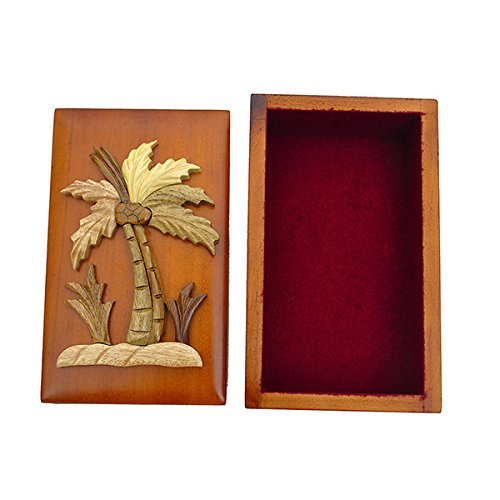 Handmade Wooden Art Intarsia Palm Tree Trinket Box with removable top (3549) (g2)