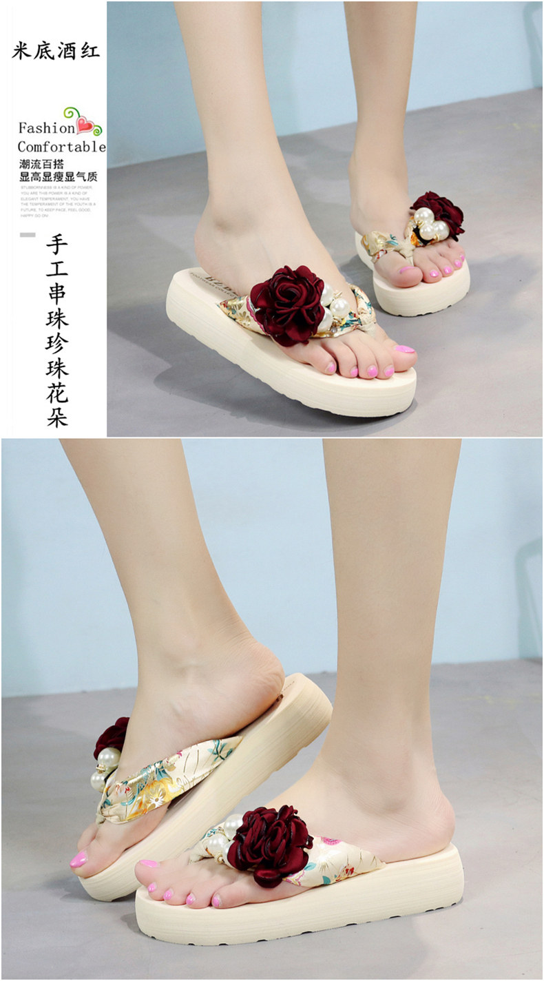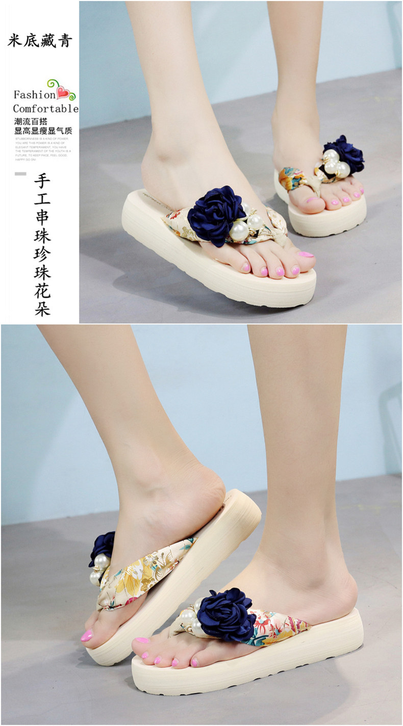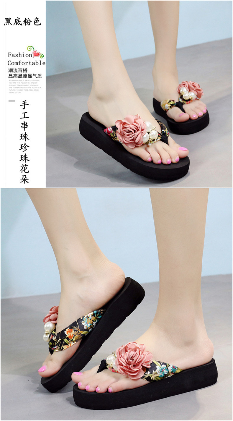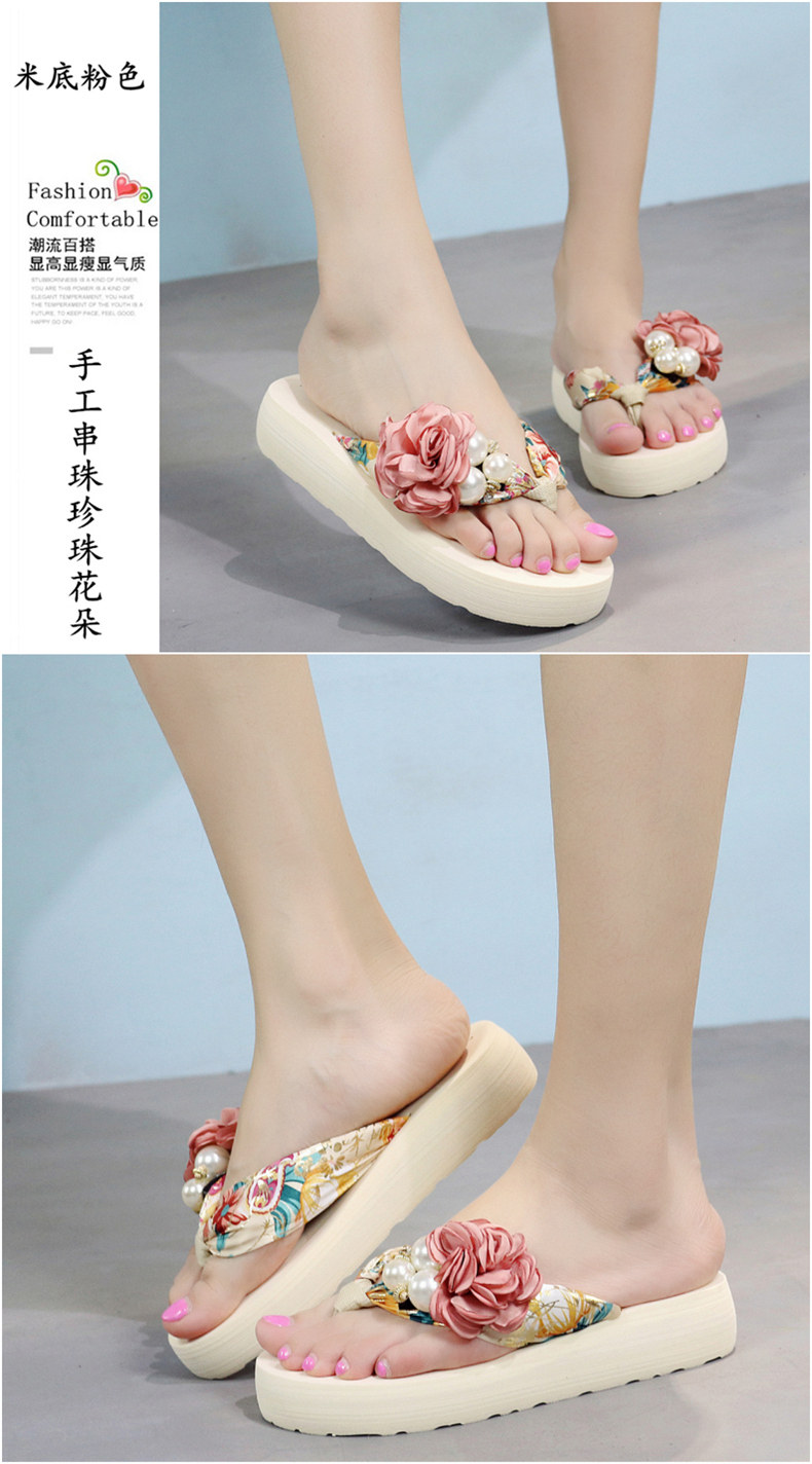 平底花朵凉拖鞋女夏韩版外穿防滑夹脚人字拖鞋时尚厚底甜美沙滩鞋