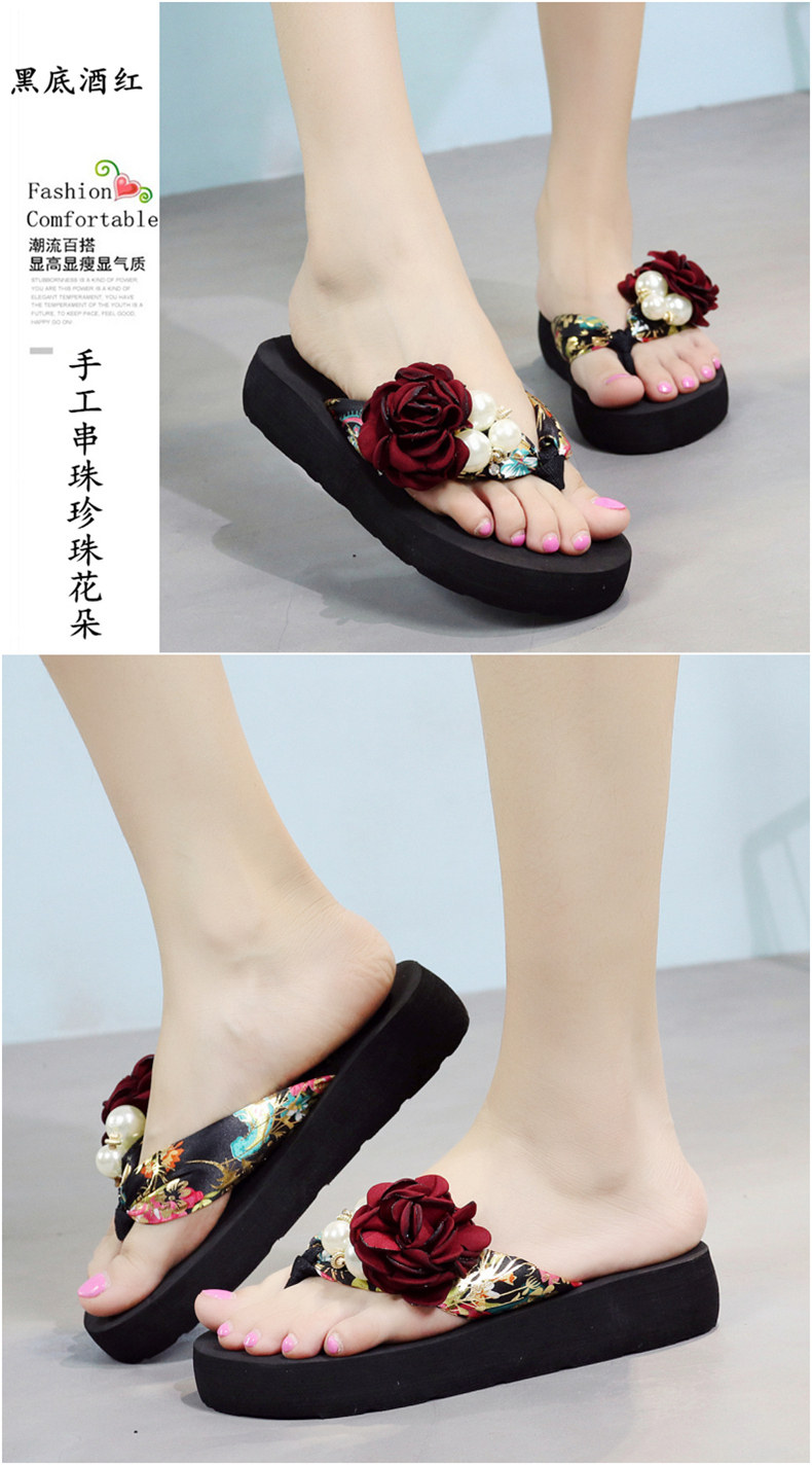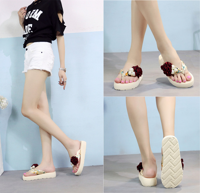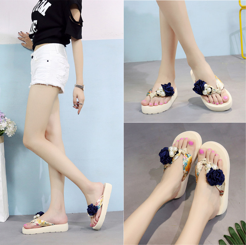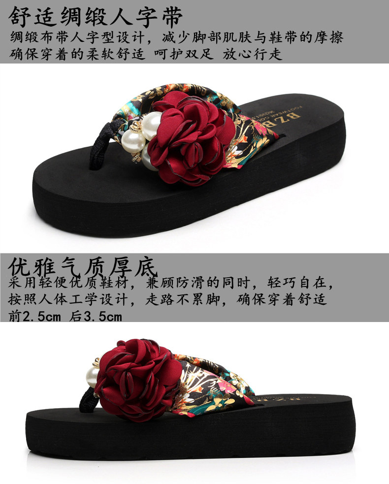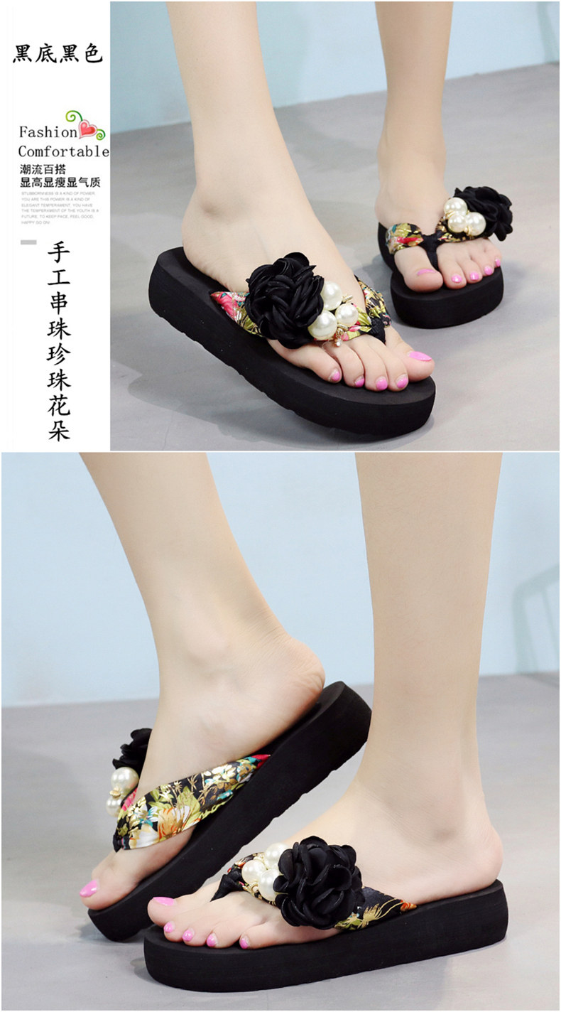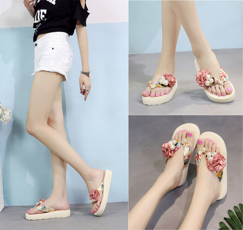 平底花朵凉拖鞋女夏韩版外穿防滑夹脚人字拖鞋时尚厚底甜美沙滩鞋