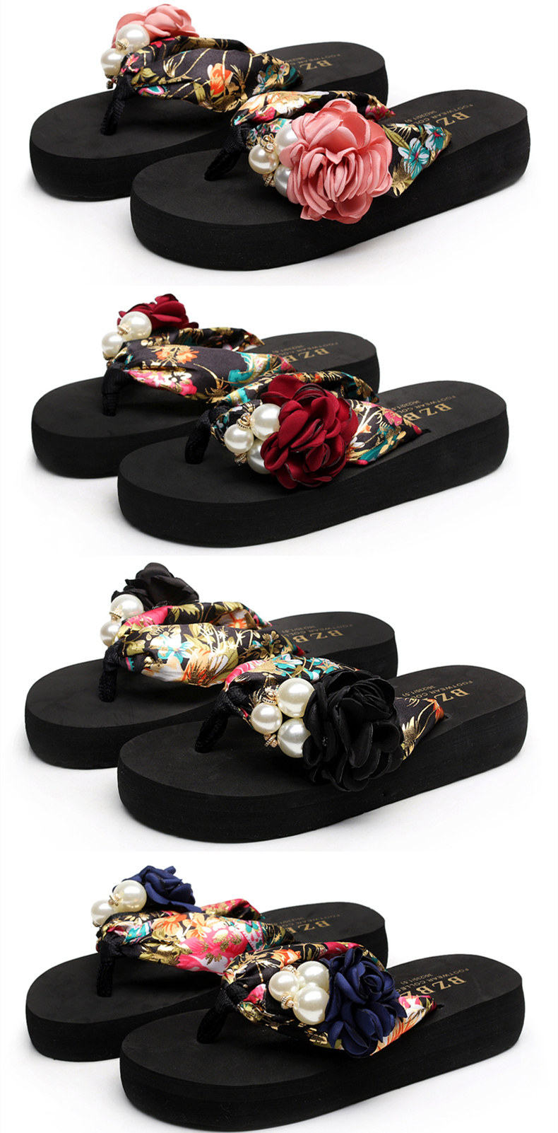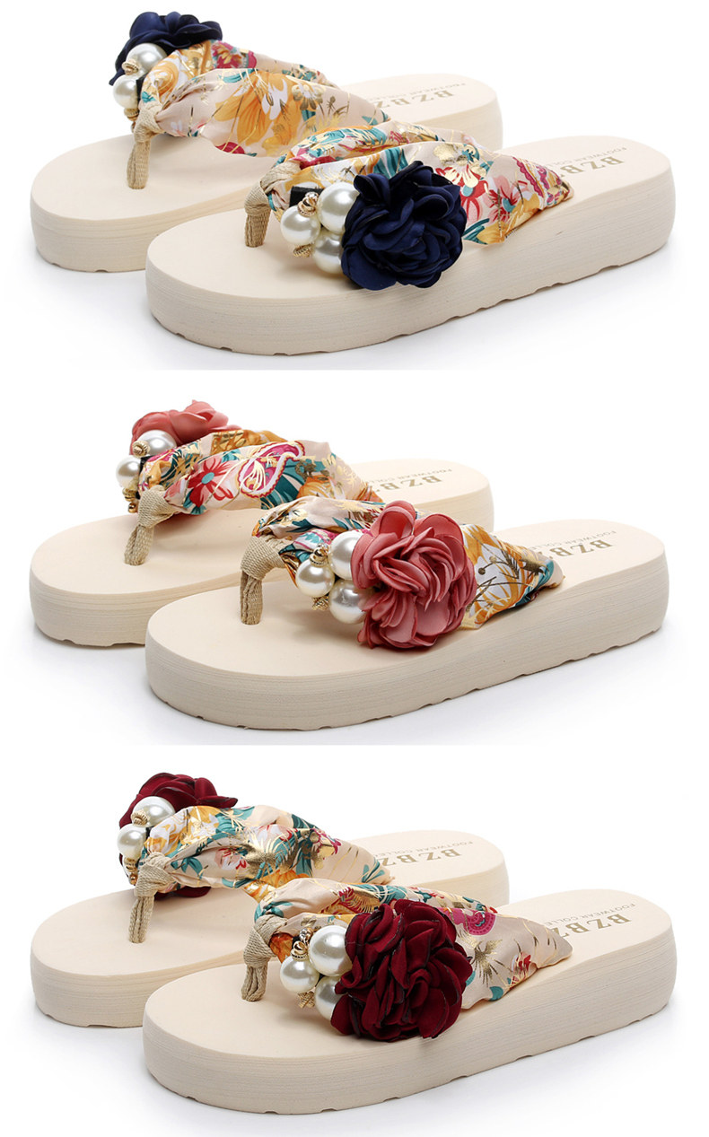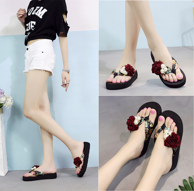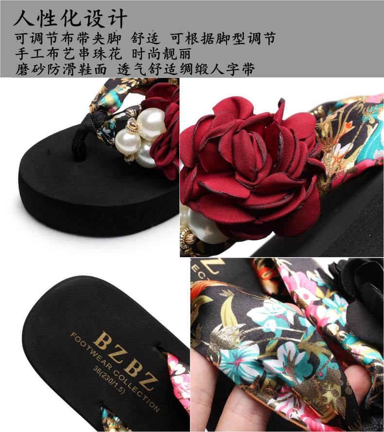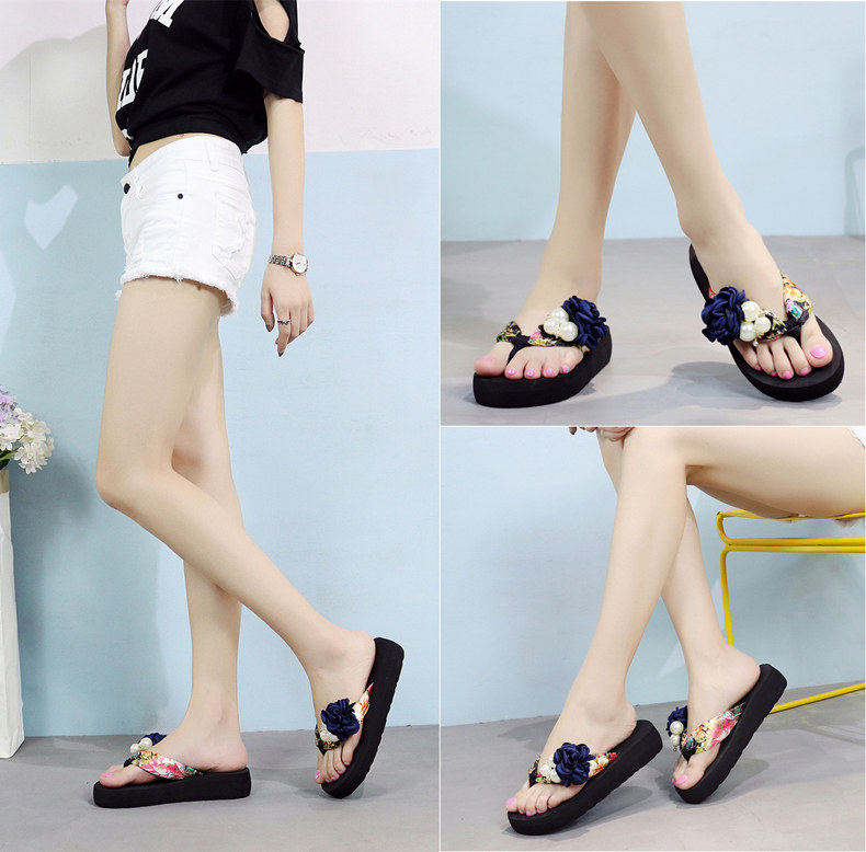 平底花朵凉拖鞋女夏韩版外穿防滑夹脚人字拖鞋时尚厚底甜美沙滩鞋