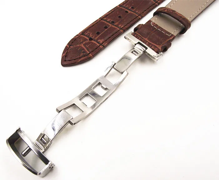 10 개/몫 18 미리메터 20 미리메터 22 미리메터 정품 가죽 시계 밴드 시계 스트랩 방수 가죽 스테인레스 스틸 버클-브라운 컬러