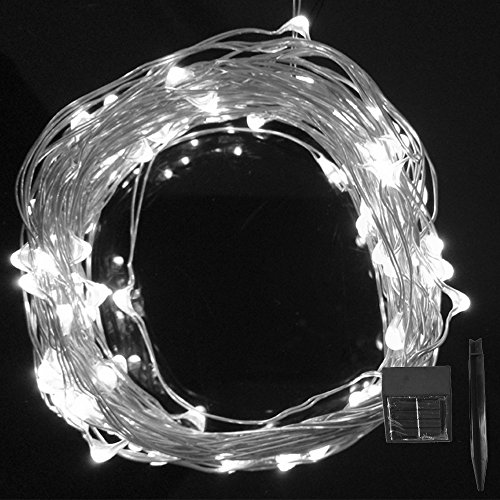 QCLED Solar String Lights on Copper Wire by - Starry String Lights -Solar Starry String Lights -100 Warm White LED - 33 Feet Long - Strings of Lights - String Outdoor Lights - Solar String Lights Outdoor - LED String Lights - Light String Graden - - White