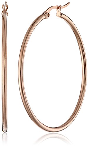 Hypoallergenic Imported 18k rose gold plated stainless steel 40mm hoop earrings featuring top click clasp Brand : Amazon Collection Item model num : 652-030-E-40MM MPN(PartNumber) : 652-030-E-40MM Package Dimensions(LxWxH) : 18x8x1cm ; 9 g