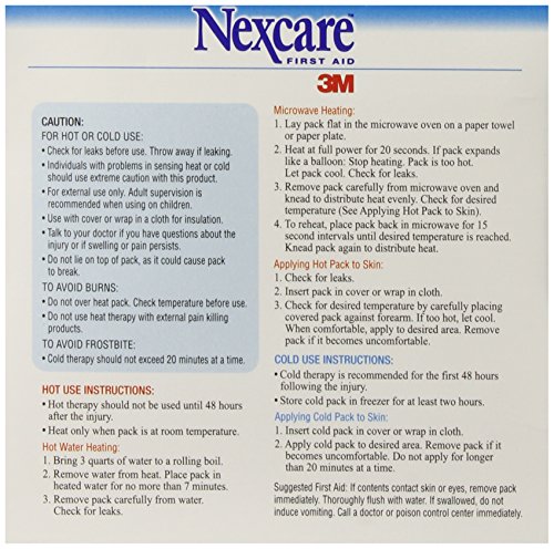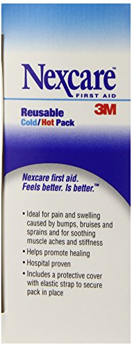 - Feature : Nexcare Cold/Hot Pack, Reusable Cold for pain and swelling. / Heat for muscle aches and stiffness. / Ideal for pain and swelling caused by bumps, bruises and sprains and for soothing muscle aches and stiffness. / Helps promote healing. Hospital proven. / Includes a protective cover with elastic strap to secure pack in place.