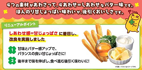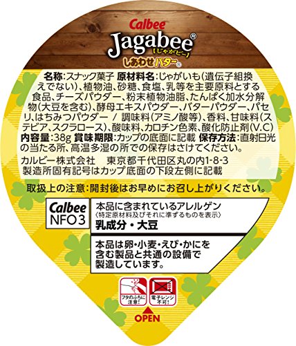 原材料:じゃがいも(遺伝子組換えでない)、植物油、砂糖、食塩、乳等を主要原料とする食品、チーズパウダー、粉末植物油脂、たんぱく加水分解物(大豆を含む)、酵母エキスパウダー、バターパウダー、パセリ、はちみつパウダー/調味料(アミノ酸等)、香料、甘味料(ステビア、スクラロース)、酸味料、カロチン色素、酸化防止剤(V.C)
