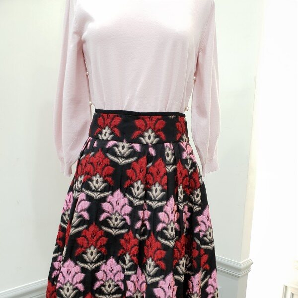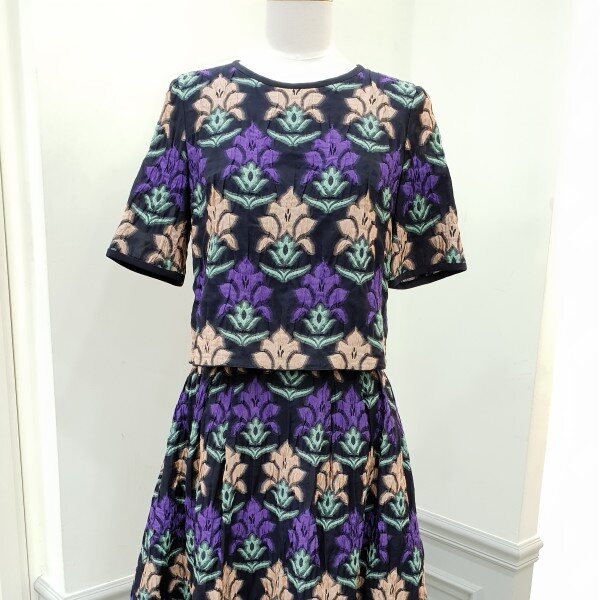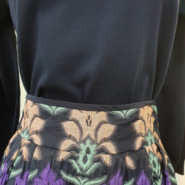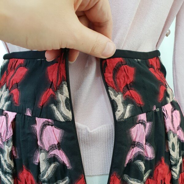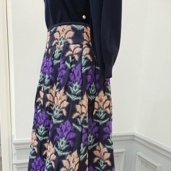 소재가 독특하고 고급스럽습니당~♡얇은자카드 느낌안입은듯 엄청가볍구요허리는 살짝하이입니다~총장60cm