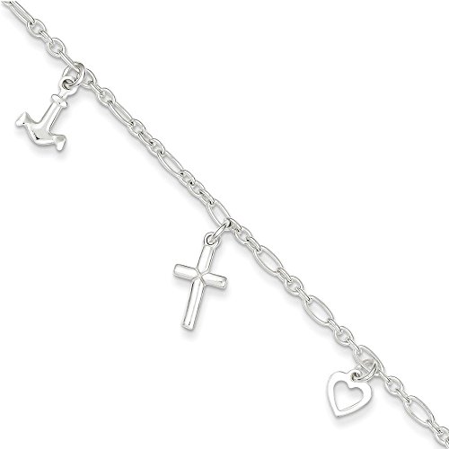 -. Title : Sterling Silver Polished Heart Cross And Anchor Chain Anklet Length 10 Inch Lobster Clasp