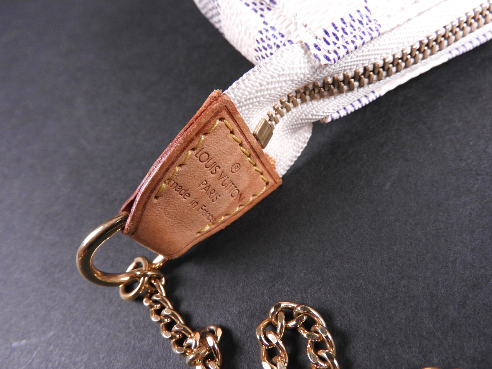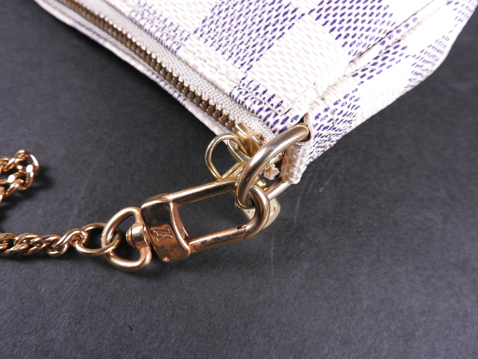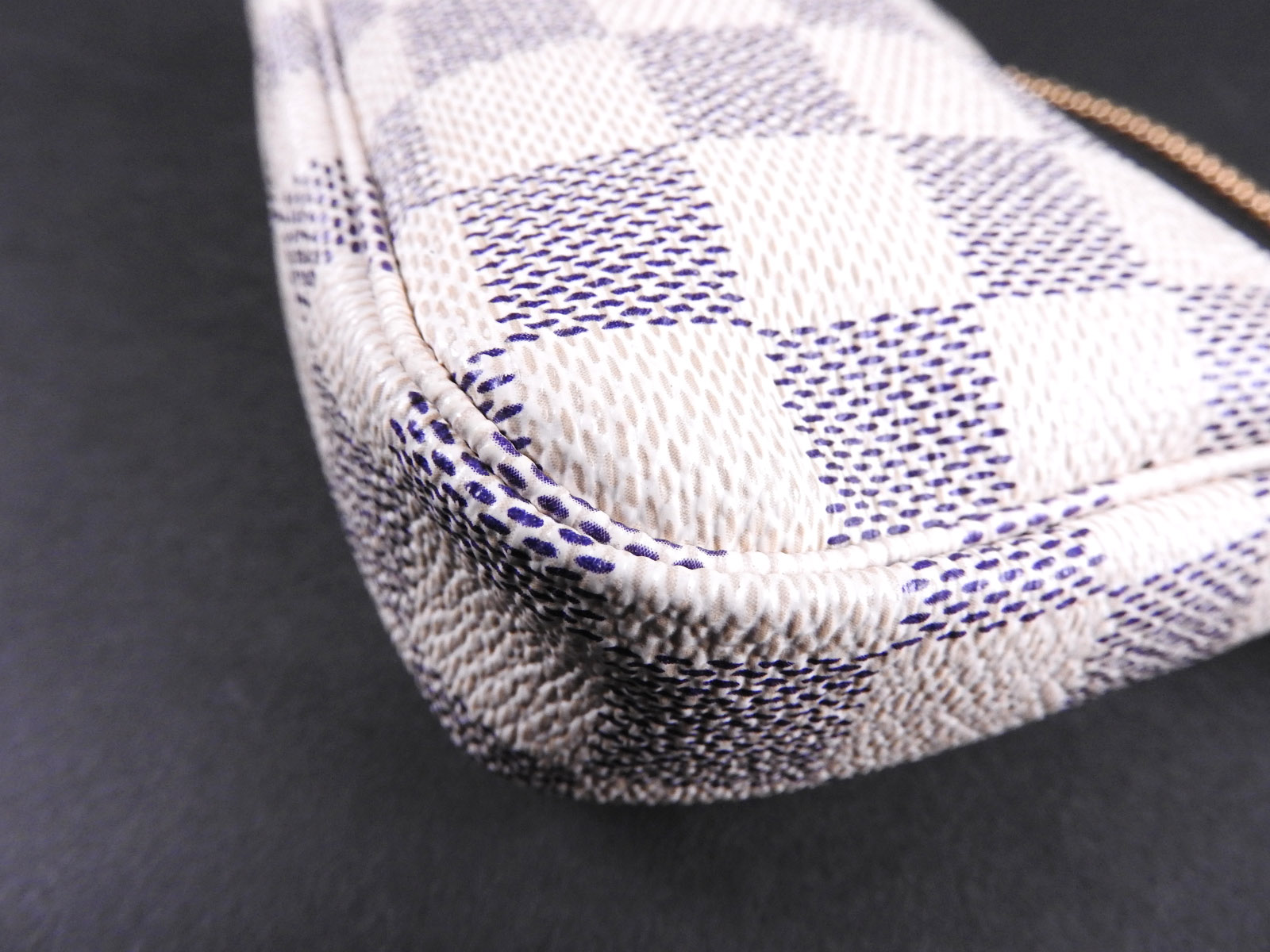 | Exterior | Damier azur canvas: Barely used feeling. Slight stains. Leather: Slightly used feeling. Some light stains and tanning. |