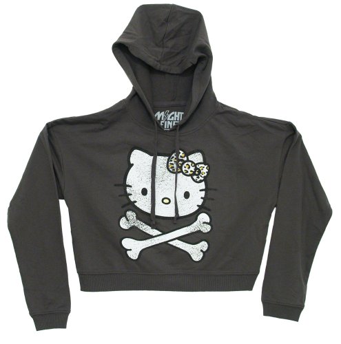 *Color: Charcoal This is a junior's cropped hoodie, from the trusted Mighty Fine brand. Features a Hello Kitty crossbone design. Juniors hoodies are sized for teen girls and slim women.