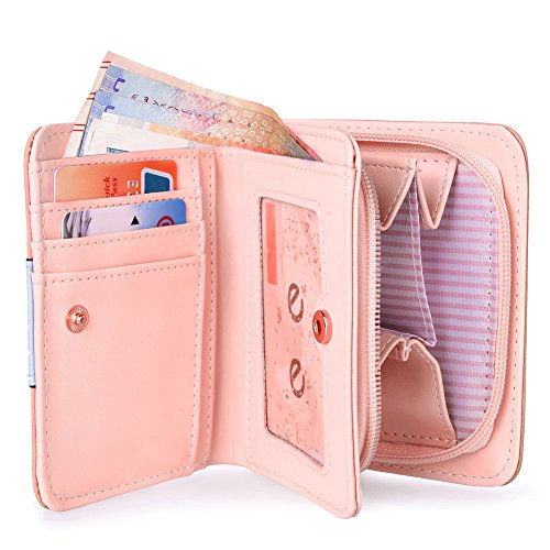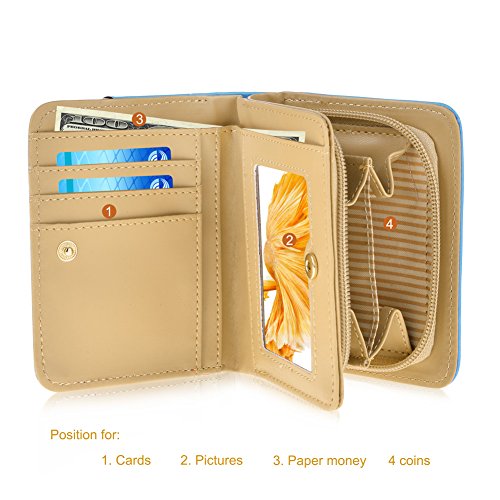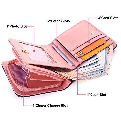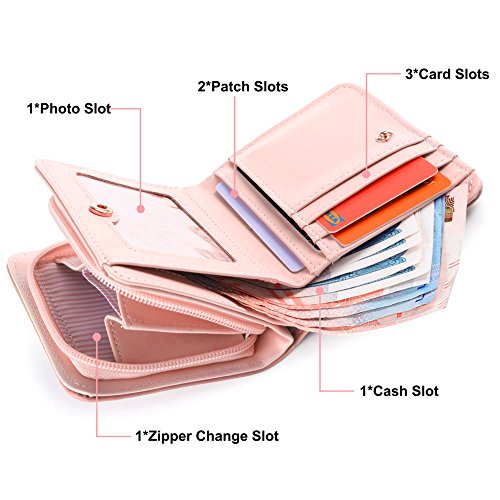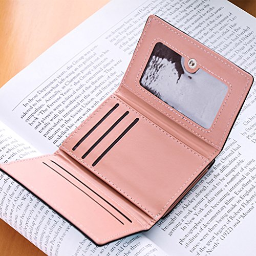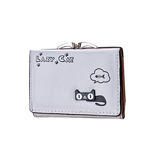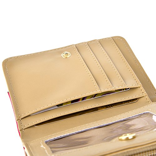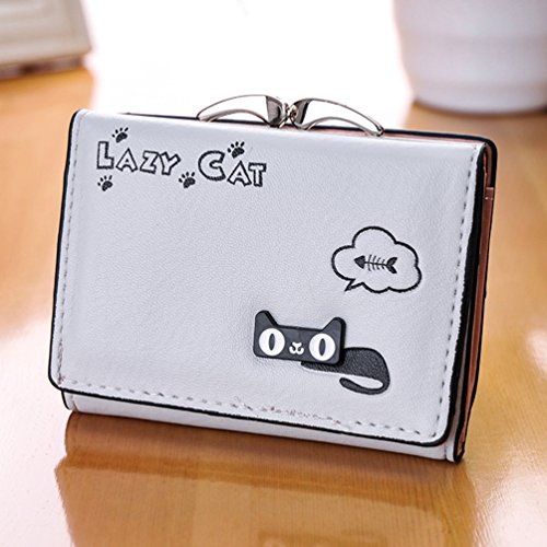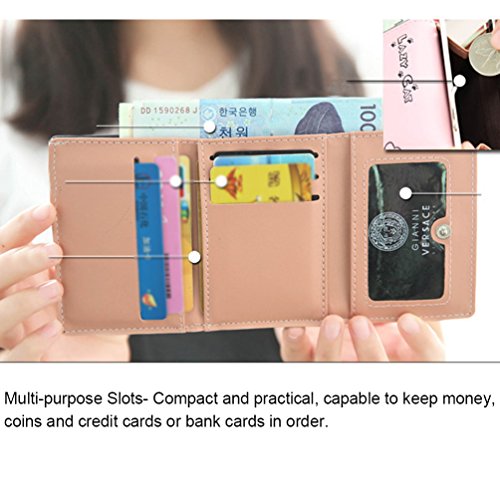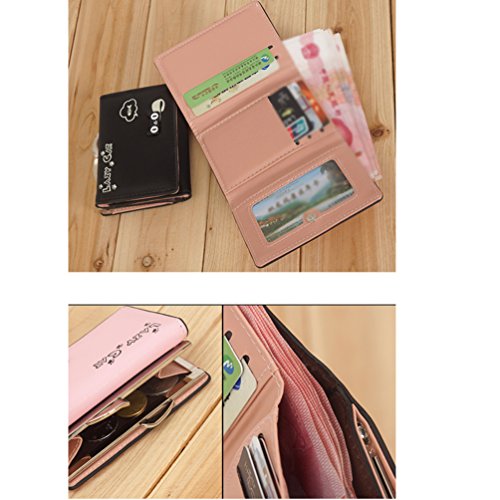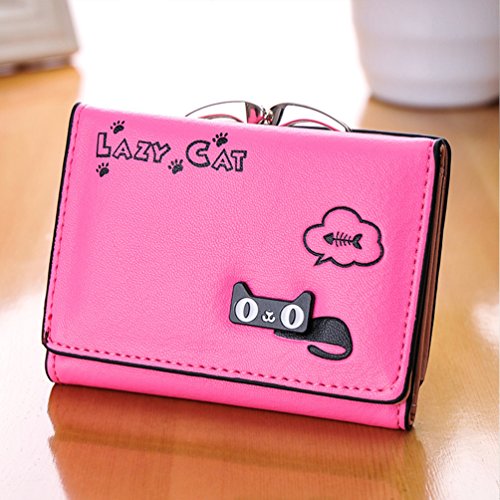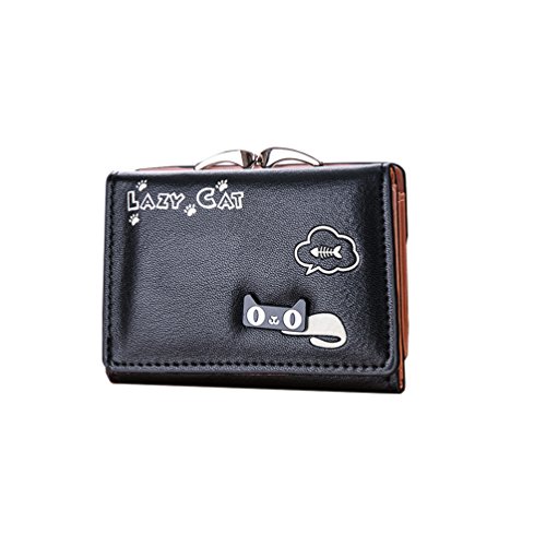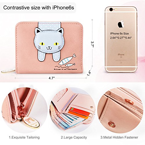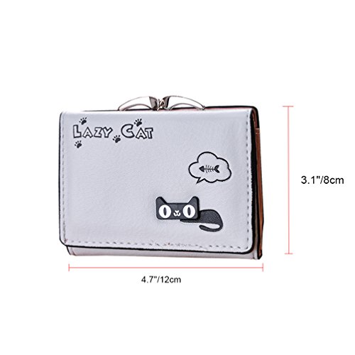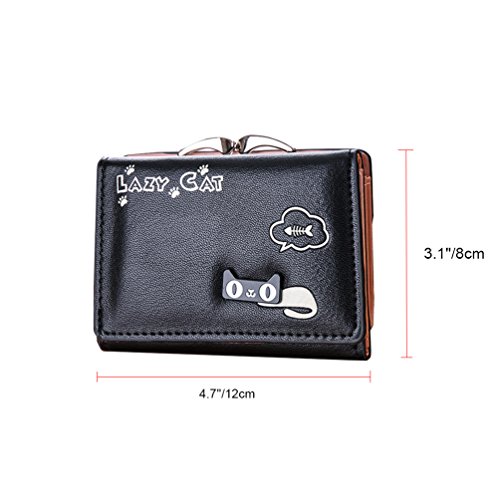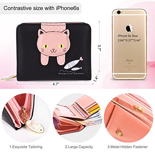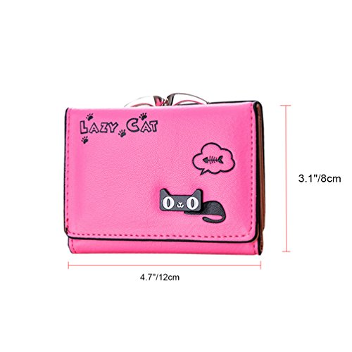 Feature: Material: synthetic leather Style: cute and fashionable Pattern: lovely cat and bowknot Fold: 3 Internal structure: 11* card slots, 1 slot for large bills, 2* picture slot, 1*change slot Size: 4.3'(L)*1.2'(W)*3.1'(H) Capacity: large space for card, bill, picture and change Color: as pictures show