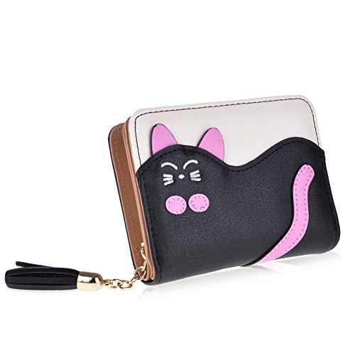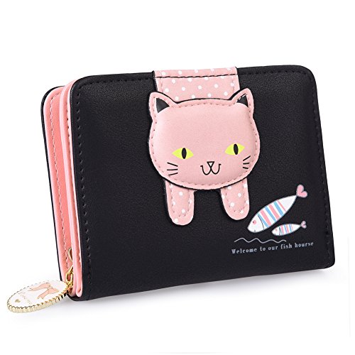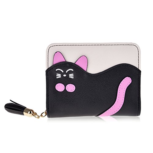 Binding : Apparel Product Description Information: This lovely girls' wallet is made of durable synthetic leather and has various colors for your choice. What makes it unique is its cute bowknot and cat decoration outside. Enough room and length allow to hold the cards and bills with trifold design. It is a ideal gift for your friends and yourself. If you want to know more details or have any questions, please look through the detailed page or contact the customer service.