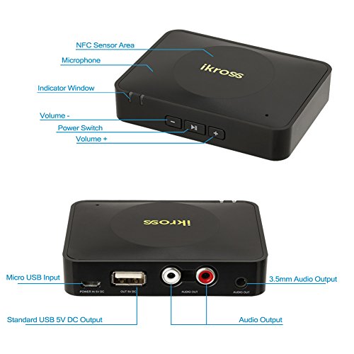 The iKross NFC-Enabled Bluetooth Stereo Receiver is the perfect solution to stream music wirelessly from your Bluetooth-enabled devices to any ordinary speaker systems.Its hands-free calling feature allows you to answer or reject the phone by this receiver.