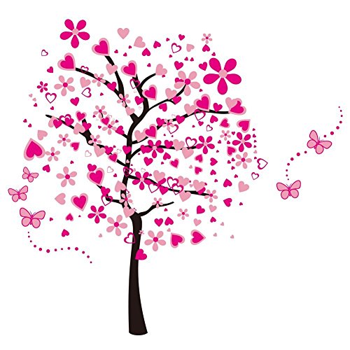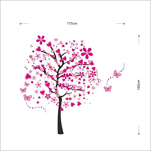 -. Title : Amaonm Cartoon Pink Heart Peach Tree Wall Decals Butterfly Flowers Wall Decor Decorative Painting Supplies Wall Treatments for Girls Kids Living Room Bedroom Offices Classroom