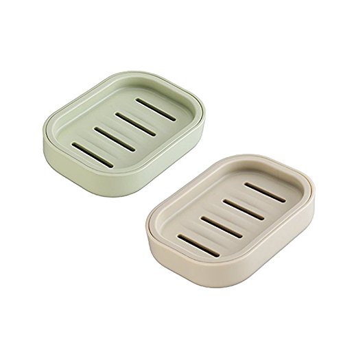 Package inculding: 2Pcs Plastic Soap Box, one is green and the other is khaki.