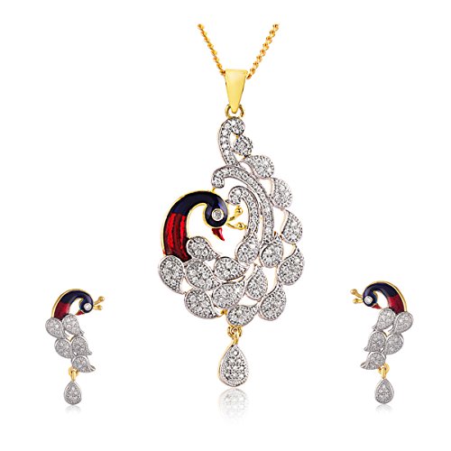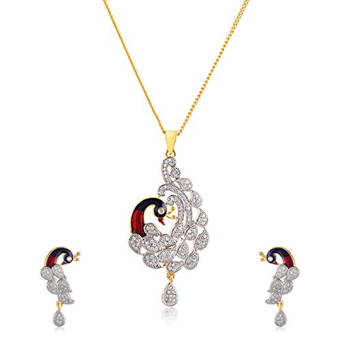 -. Title : Swasti Jewels Peacock shaped CZ Zircon Fashion Jewellery Set Pendant Earrings for Women …