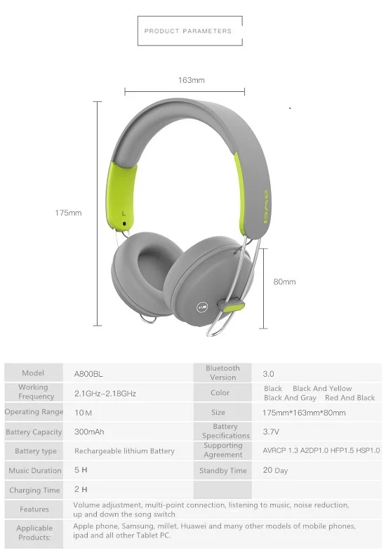 ● Bluetooth V3.0 HiFi music headphones, the transmission range up to 10m.