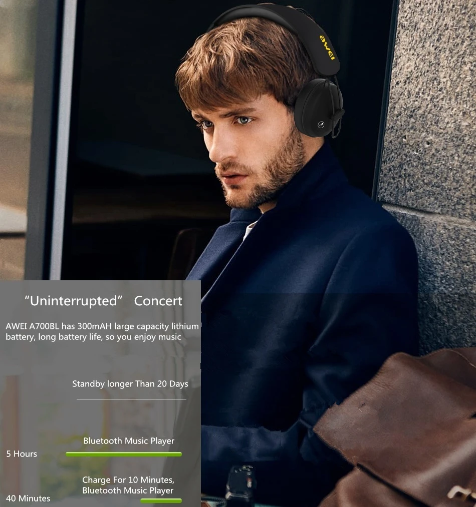 Original AWEI A800BL Bluetooth Headphones Headset Wireless Headphone Microphone Headset Sports Control App For iOS Android