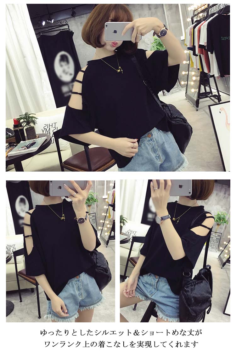 | 今年流行の肩だしデザインで大人可愛いワンショルダーTシャツゆったりとしたシルエット&ショートめな丈がワンランク上の着こなしを実現してくれますストレッチ性もあるので、ストレスフリーに着れデイリーウェアとしても大活躍しそう | |