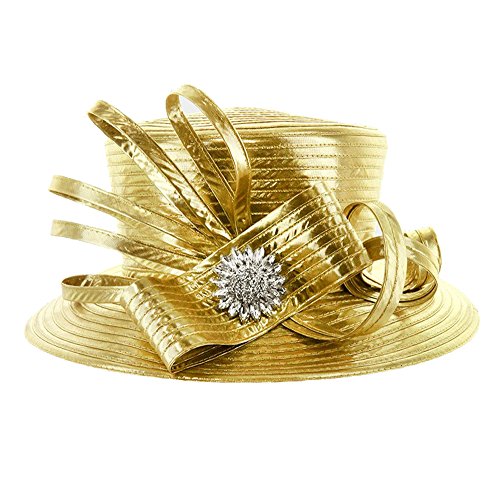 Binding : Apparel Product Description Kentucky Derby Church Wedding Pink Dressy Organza Ribbon Hat 264348 USA SELLER Soft romantic beauty for that special spring/summer event, including the Kentucky Derby! Details ? Color : Gold ? Theme : Flower Leaf ? Size : One size fits most ? Crystal flower detail metallic satin hat with curly bow 0