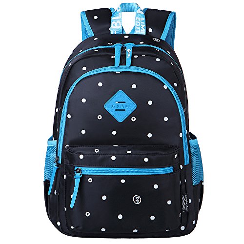 -. Feature : Dot cute school backpack, made of durable and practical good quality oxford / Approx dimensions: 13 x 17.7 x 6.3inch (L*H*W), fit 14" laptop / Compartments: 2*side pockets, 2*front zipper pockets, 1*main zipper pocket, 1* laptop/tablet compartment / Adjustable padded shoulder straps to protect your shoulder, you can adjust it according to your height and comfort requirements / Great for students going to school & college or for casual day use. It is fashionable, perfect gift for you and your friends