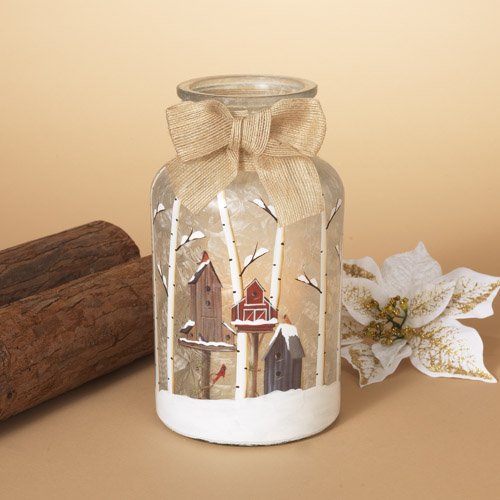 Gerson 10 Inches Height Battery Operated Lighted Frosted Glass Winter Scene Jar with Timer Function