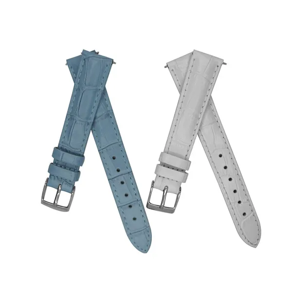 16 미리메터 가죽 시계 밴드 라이트 블루 손목 화이트 정품 가죽 스트랩 시간 Stianless 스틸 버클 여성 시계