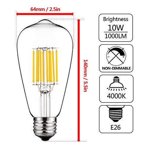 - Dimmable,Antique edison style, 4000K,1000 lumens,Super high brightness,360 degrees beam angle,with overload protection,Short circuit protection and over temperature protection.