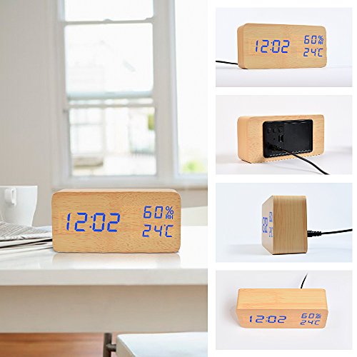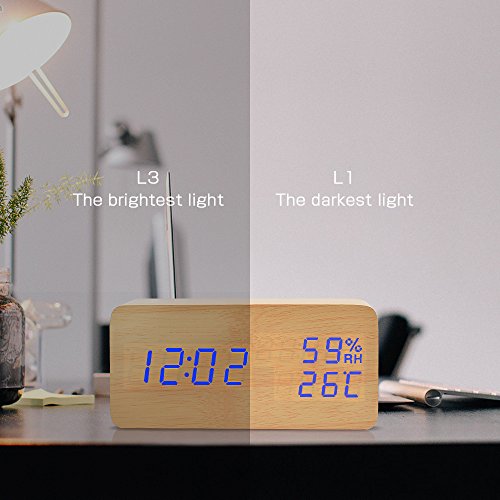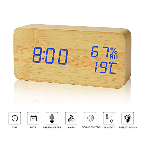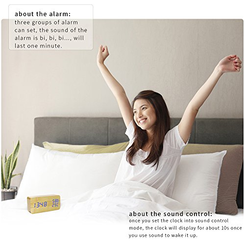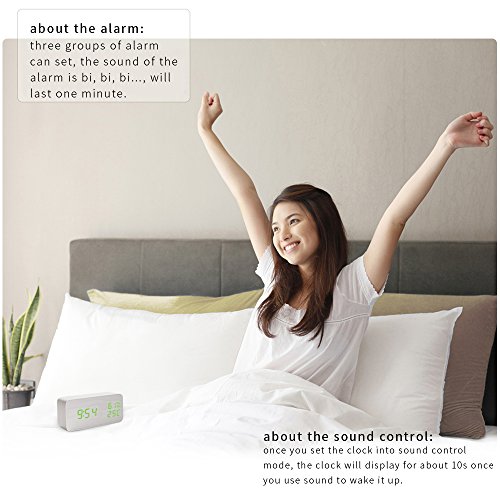 MUlTIFUCTIONAL CLOCK---This clock will show you date/month/year and Thermometer along with temperature. 3 sets of alarm clock you can set. You can set working day alarm or everyday alarm by your own choice. And ,for God's sake, it can be touch/voice controlled. And when activated to the VOICE CONTROL mode, the display will extinguish after 15 seconds and any touch or voice could wake it up. You can read every information you need on this alarm clock.