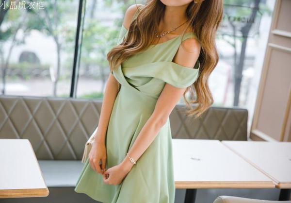 セクシーなオープンショルダーVネック Aラインフレアミニワンピース/ M