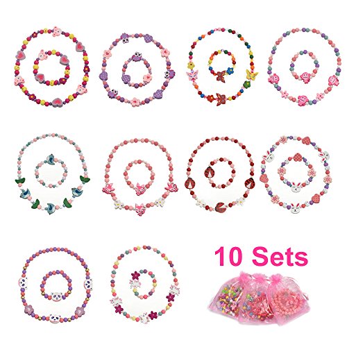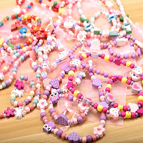 - SUPER VALUE--This girls party favor jewelry pack include 10 Sets Necklace & Bracelet,Each Set Matching Necklace and Bracelet in a Organza Gift Bags.
