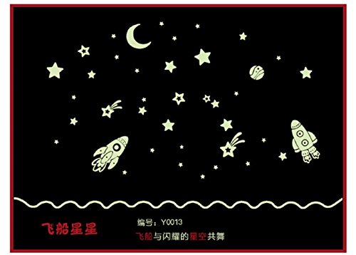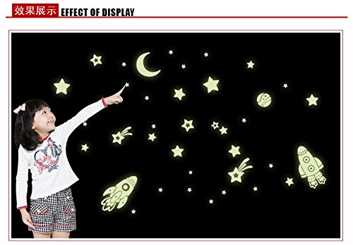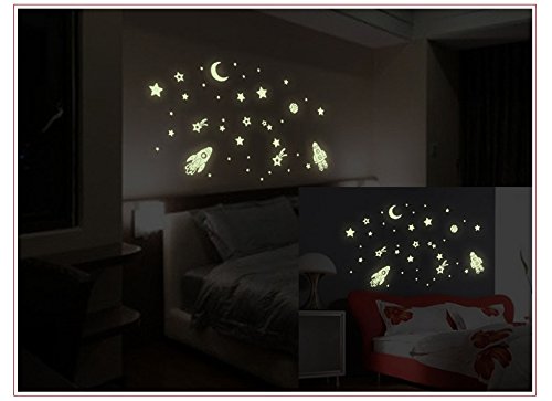 Amaonm® Removable Glow in the Dark DIY Home Art Wall Decals Luminous Light Rocket Stars and Moon Wall Stickers Florescent Light Peel Stick for Kids Babys Boys Bedroom Ceiling Playroom