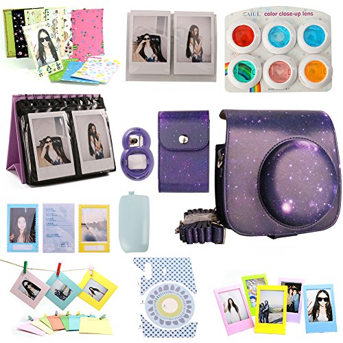 Product Variety -- This set has everything you could possibly imagine, satisfy your different needs. Picture frames, photo albums, photo case, film pouches and film stickers borders spruce up your photos; Selfie lens takes nice pictures and colored lens become your favorite photographic tool; Camera decor sticker provides good-looking appearance.
