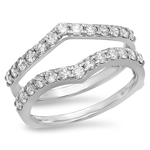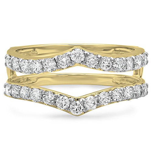 -. Title : 0.95 Carat (ctw) 14K Gold Round White Diamond Ladies Anniversary Wedding Enhancer Guard Double Ring 1 CT