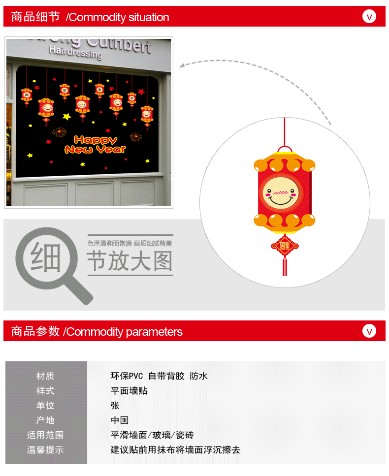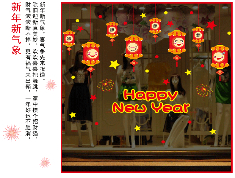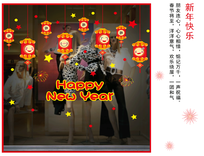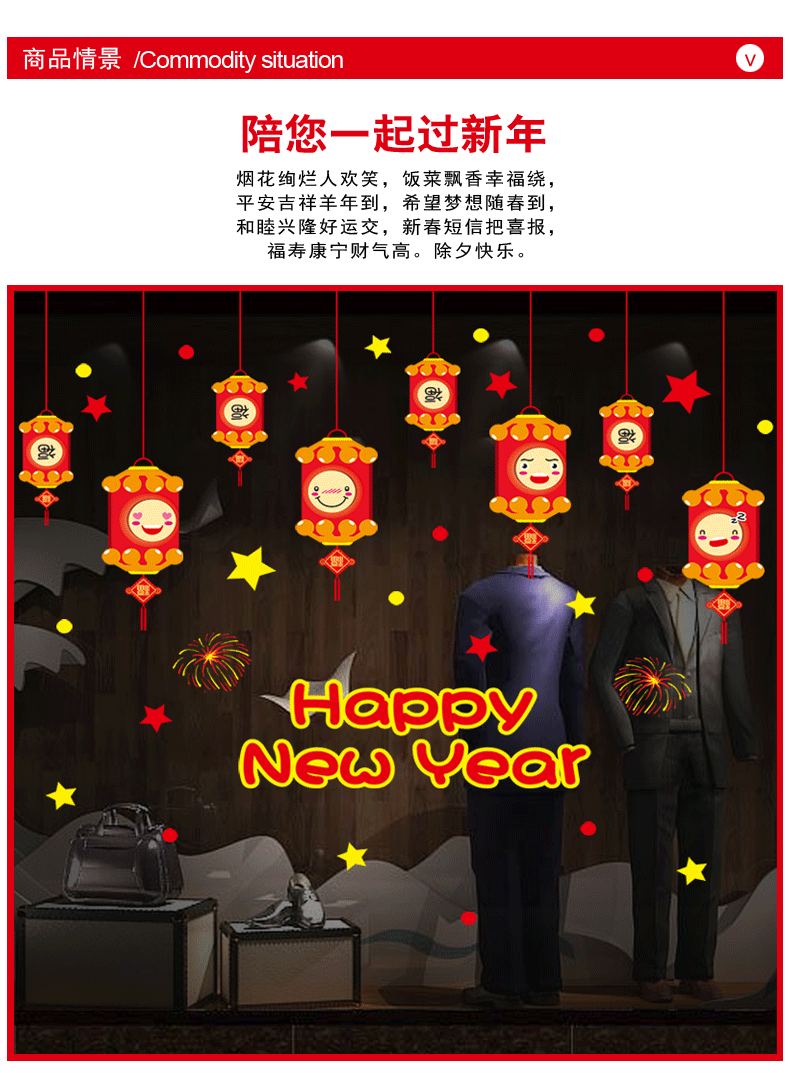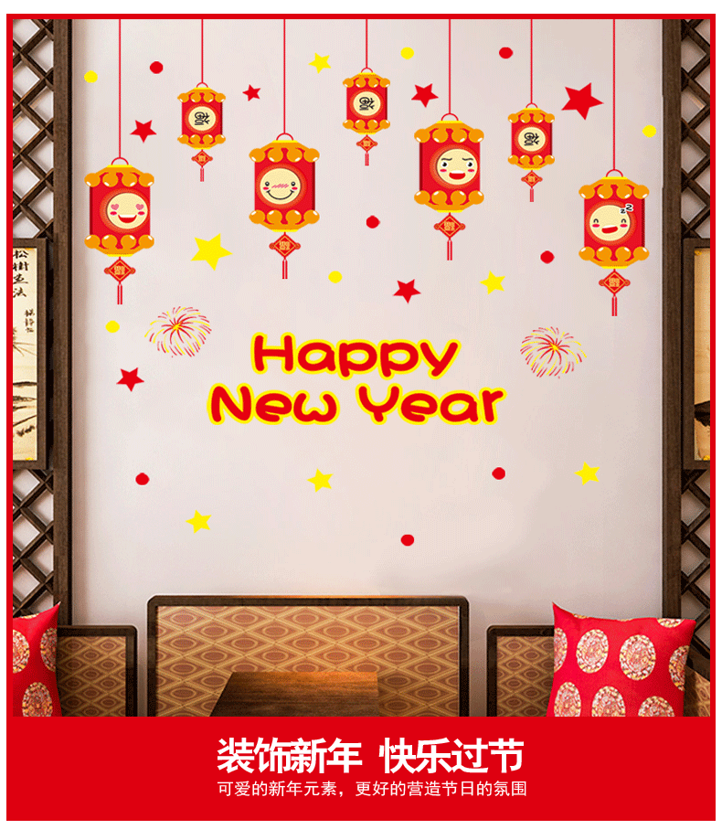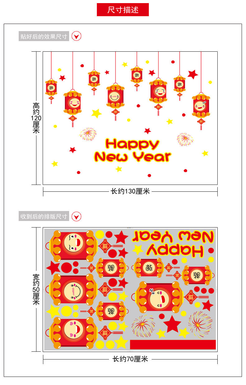 可爱灯笼新年春节过年喜庆贴纸装饰品玻璃移门贴窗户窗花贴纸墙贴