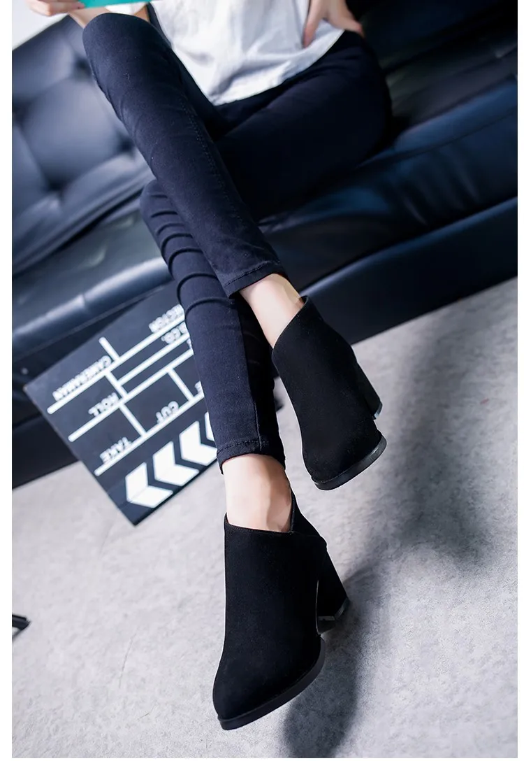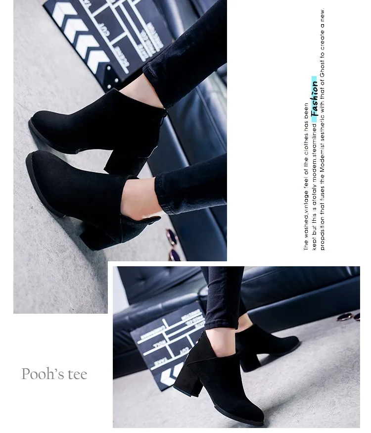 Model Number:Winter Women Boots Thick Heel Leather Female Side Zipper Shoes