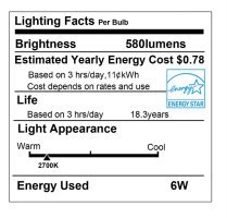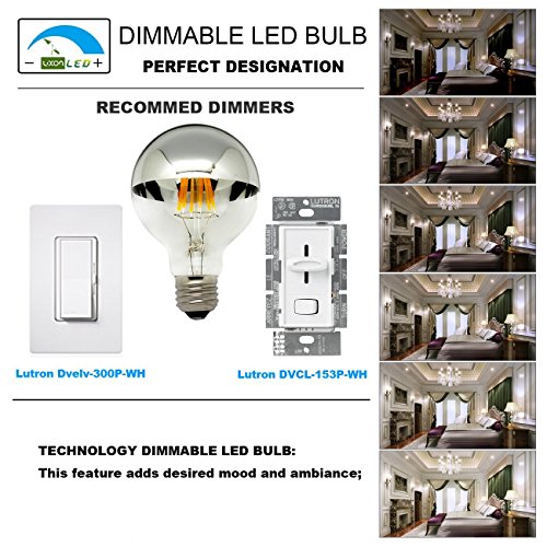 Specification : Bulb Type: G80 / G25 Half chrome light bulb Watt: 6w. Voltage:110-130VAC lamp base: E26 Color Temperature (K): (warm white) 2700K CRI:> 80 Dimmable : Full dimmable (Work with all dimmers) 0