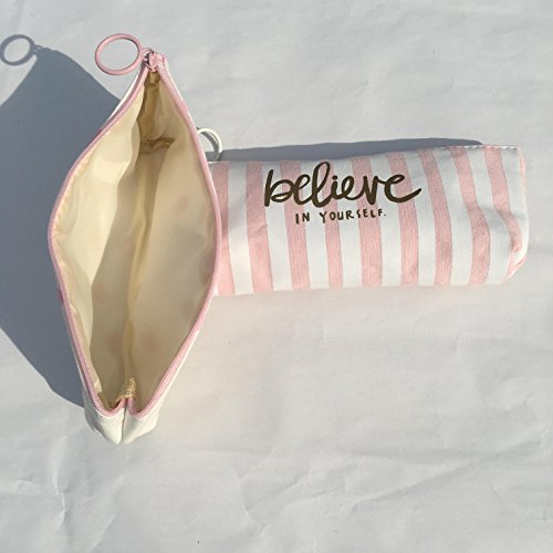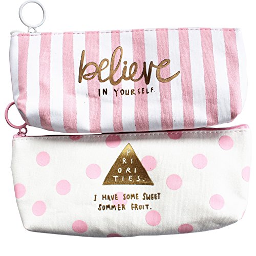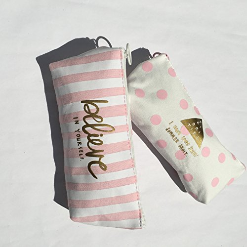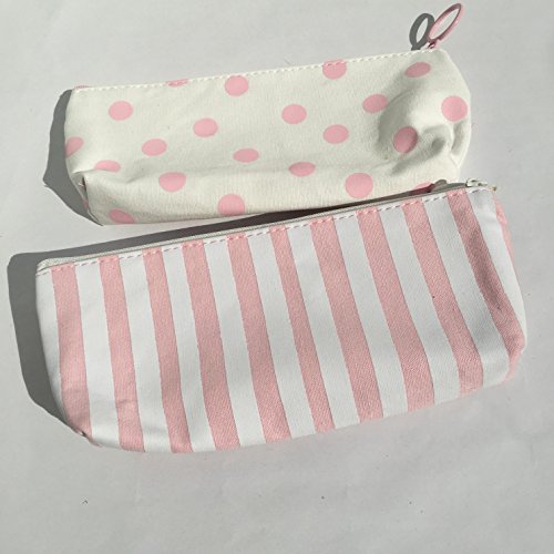 Summerose Light Pink Gold Canvas Polka Dots Stripes Pencil Case Makeup Bag Coin Pouch (Pack of 2)