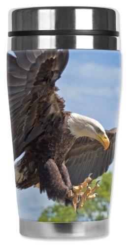 Mugzie Attacking Eagle Travel Mug with Insulated Wetsuit Cover, 16 oz, Black