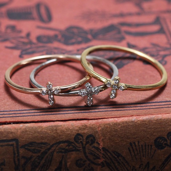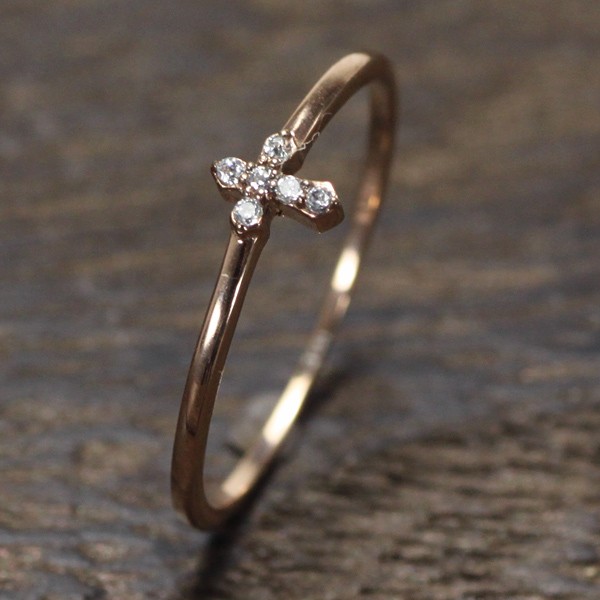 華奢リングにちょこんとあしらったキュービックジルコニアのクロスが華やかな指先に演出します。
