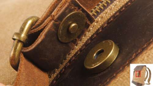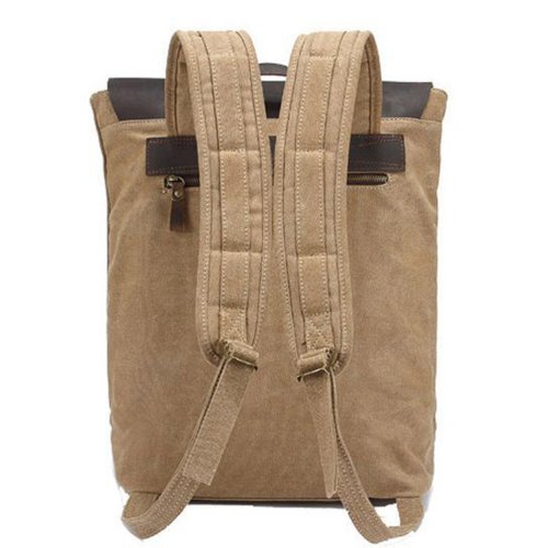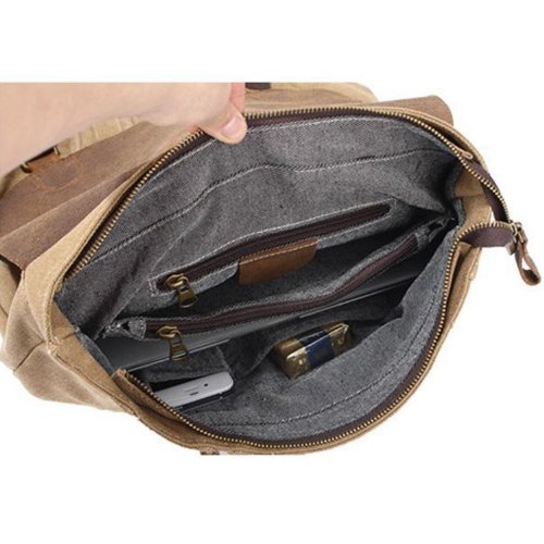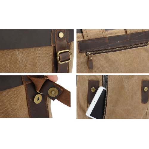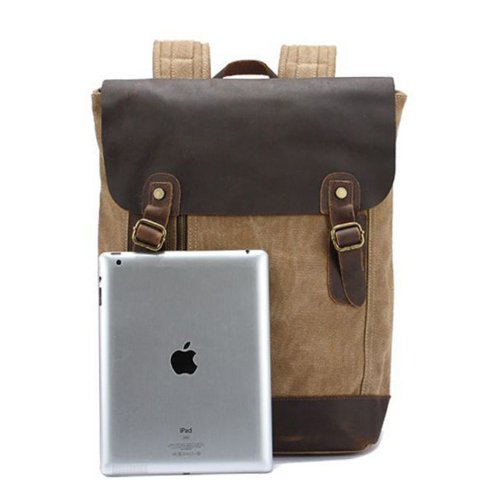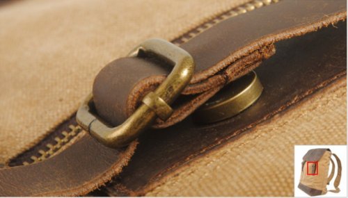 - Feature : Eco-friendly casual life style,high density canvas, durable and fashionable. / Genuine leather decoration,brass hardware,zipper closure. / Adjustable shoulder strap for easy and comfortable carrying. / Large main pocket fits up to 14" laptop,iPad and A4 size books. / Overall dimension: Approx.11.8"L x 16.1"H x 5.9" W .