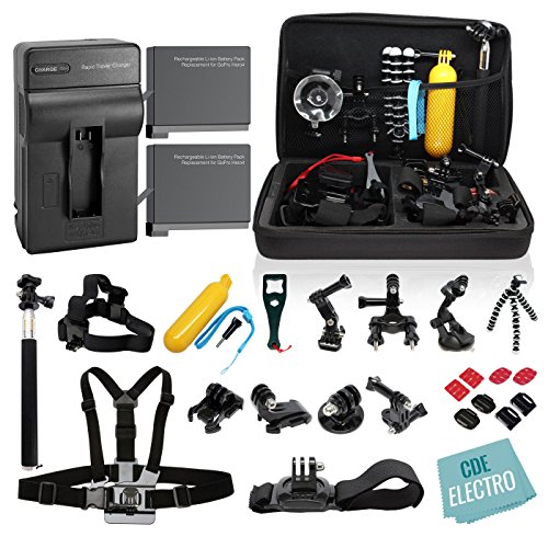 CDE© Complete Kit for GoPro Hero4 Black or silver: 2 Batteries, Charger + 30pcs accessories Kit. Outdoors Bundle for Hero 4: 2 batteries +Charger +Head & Chest Straps +Grip +Tripod +Suction Cup &More
