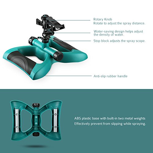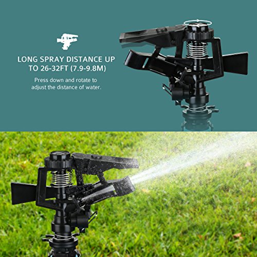 -. Brand : VicTsing -. EAN : 0714874141249 -. Feature : Long Spray Distance. Allow up to 26-32.8ft distance of watering. Simply connect water joint to the connector and faucet. Press down and rotate to adjust the distance of water / Optional Spray Scope. Cycle spraying from 0°to 340° rotations and 360° swivel spraying to choose from. Fold the stop block and adjust to the suitable angle for your desired spraying scope. / Universal Fit. Allow you to connect with several sP.R.Inklers to cover a wider water range.Perfect for lawn, yard, garden and etc. Help you save water by adjusting the density of the water flexibly. / Premium Quality. High quality ABS materials ensure sturdy and constant use. Internal thread allows sealing tightly and securely. / Built-in Metal Weights. The sturdy base with two metal weights effectively keeps the sP.R.Inkler stable while using. The rubber handle ensures secure operation. -. Label : VicTsing -. Manufacturer : VicTsing -. MPN : USAE1-VTGECD036AGUS -. PartNumber : USAE1-VTGECD036AGUS -. ProductGroup : Lawn & Patio -. ProductTypeName : OUTDOOR_LIVING -. Publisher : VicTsing -. Studio : VicTsing -. Title : VicTsing New Lawn SP.R.Inkler Water Irrigation System 360° Swivel Spraying Impulse 32Ft Long Range SP.R.Inklers with Metal Weights for Garden and Lawn -. UPC : 714874141249