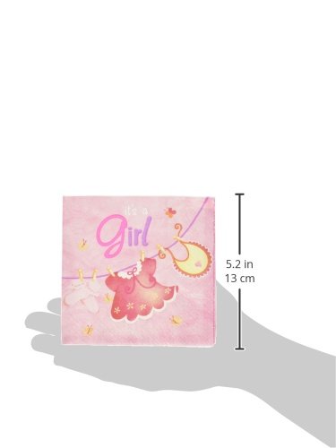 Pink Clothesline Girl Baby Shower Cocktail Napkins, 16ct