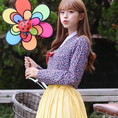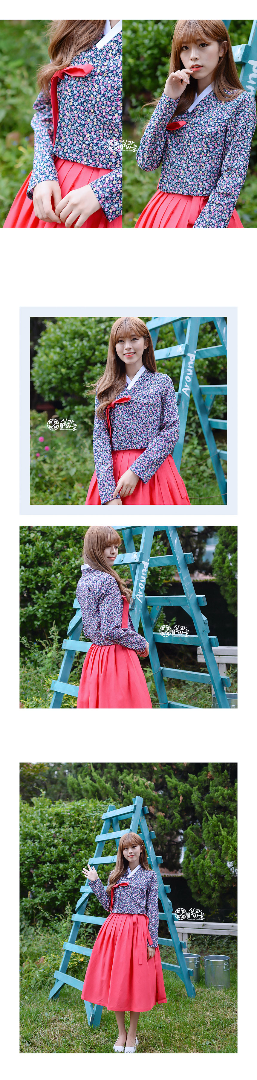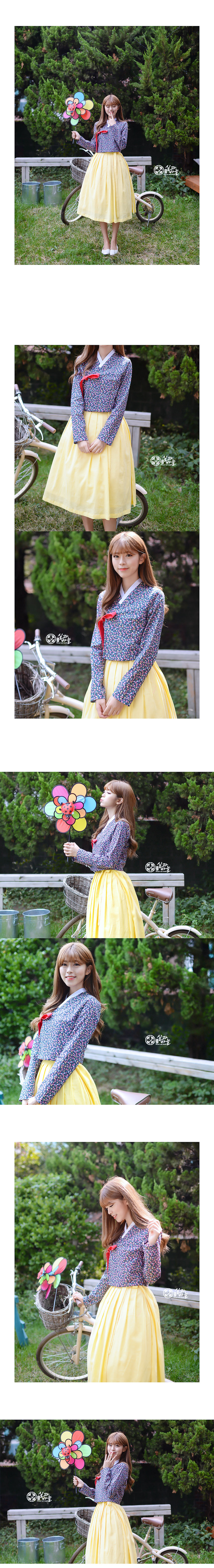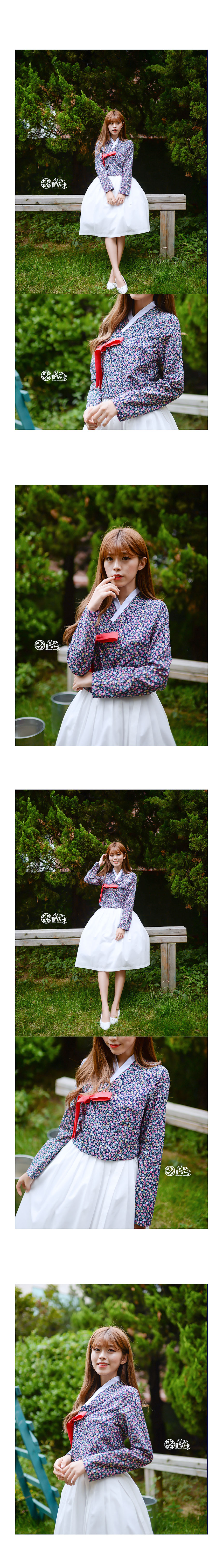 긴팔 꽃비 네이비 생활한복 긴 저고리