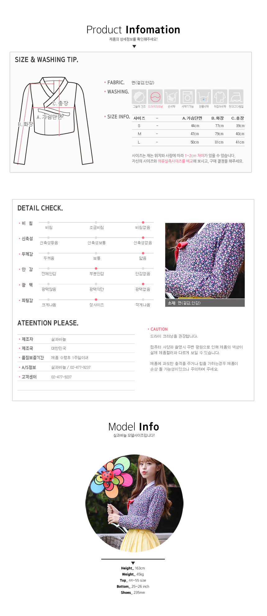 -겉감, 안감 모두 면으로 제작되었습니다.