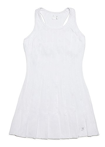 Up your tennis whites wardrobe with a modern silhouette fluttering with elegant flair. 85% polyester / 15% spandex. Tonal F box patch logo. Knife pleating detail at side seam and back. Inside bra.Feature
