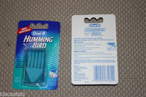 - Feature : - 1 pack of 25 MINT refill picks for the Oral-B Hummingbird electric flosser. / - These picks are designed to reach between your teeth and below your gum line to remove plaque. / - Clinically proven to improve gum health by massaging your gums which stimulate blood flow. / - These picks are MINT Flavored. / - Oral B Hummingbird handle not included