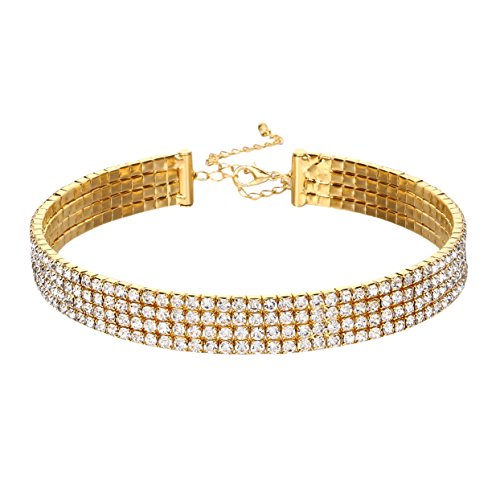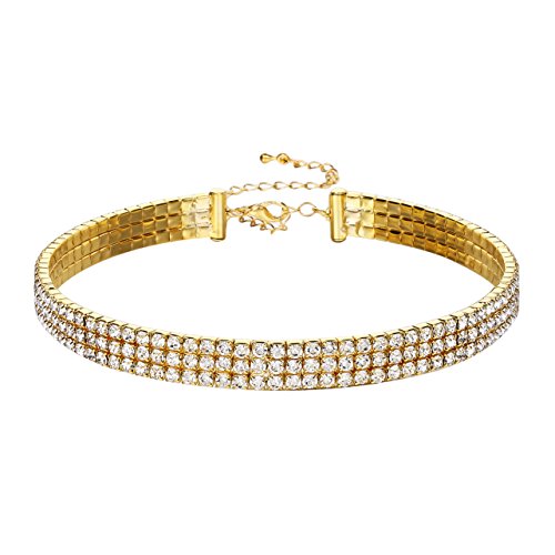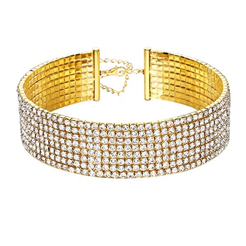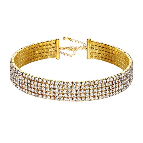 Silver /Gold Tone Shiny Crystal,Choker Can Be Adjusted To A Comfortable Fit