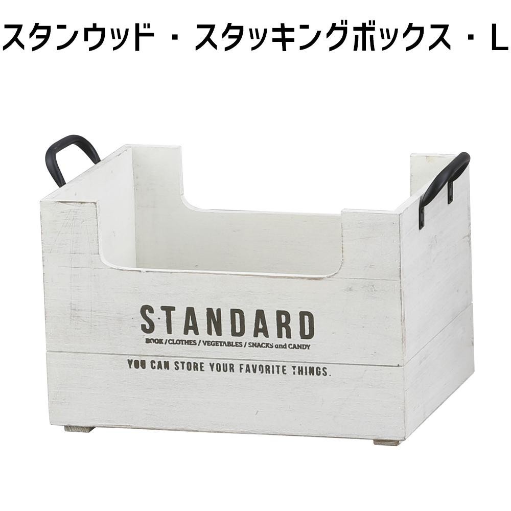 素朴ながらカジュアルにデザインされたプリントとブラックの金具部分がポイントです♪ 製造国:中国 素材・材質:ウッド、アイアン 商品サイズ:W41.5×D26×H26.5cm ※サプライヤー直送品 ご注文後2~3営業日後の出荷となります【商品名】アビテ(Habiter) スタンウッド・スタッキングボックス・L YI-006-WH