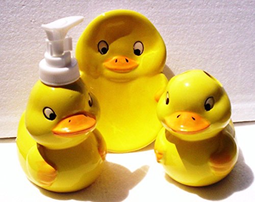 3 Piece Ceramic Yellow Duckie Bathroom Set